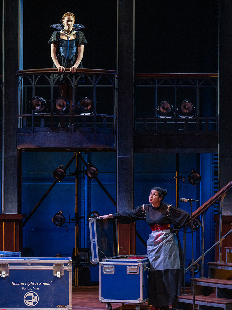 “Everyone on both of the teams has been working together on the vision of this since last November,” says Taylor Stark (CFA’25), who directs Emilia. “Some of the first conversations we had were about themes that feel like they’re overlapping in the two stories, so we could start to build a space that felt like it would work for both stories.”